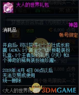 DNF将在4月份为大家带来一套大人的世界礼包,这套礼包主要是为了庆祝愚人节到来。很多人对于这条礼包的奖励并不清楚?对此下面就为大家带来DNF2019大人的世界礼包介绍。