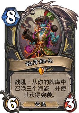 卡组的过牌手段有三个,首先就是精灵咏唱者,其次钩牙船长的战吼效果能够让黑心票贩获得突袭,从而造成超杀效果进行过牌。第三就是被诅咒的海盗亡语可获得连击卡牌。总体来说,手牌还是比较够用的。