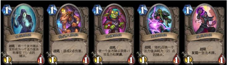 法师传说随从,卡雷苟斯被誉为魔兽世界中的战五渣,来到炉石看起来效果非常惊艳。可以让手牌中的第一张法术0费打出,若没有合适的,那么还很有可能发现一张高费实用法术,比如需要清场的AOE,或者一张炎爆进行终结等等。不仅当回合很有奇效,而且自身身材够厚,和自己的老爹一样,对手第一时间不解后续的回合后果会很严重。