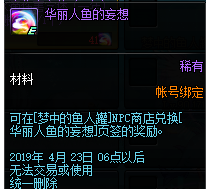 参与无限模式小游戏获得的道具,可在[梦中的鱼人罐]NPC商店兑换[华丽鱼人的妄想]页签的奖励。