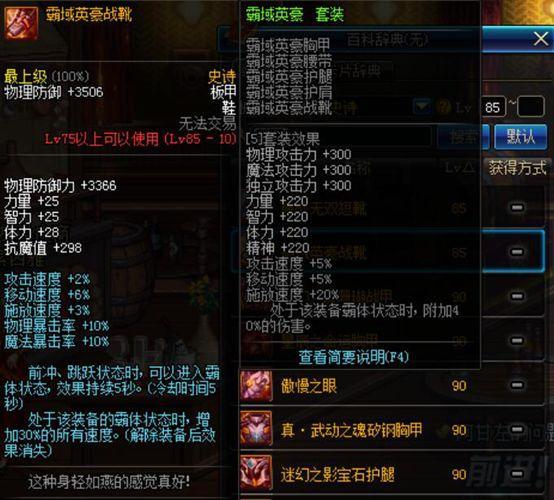 首先是霸域英豪战靴和最佳球手鞋子,这两件装备是DNF中的两大加速利器,虽然在输出方面,脱离了套装的他们显得十分鸡肋,但是对于小号刷图做任务和搬砖来说,是不可多得神器。