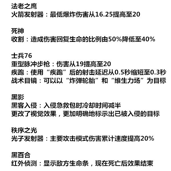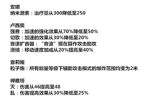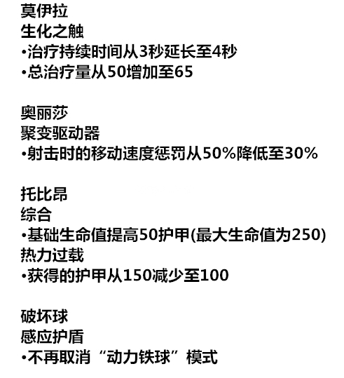 重装和支援类英雄都有或增强火削弱的改动,但没有太大的变动,大体上都是加强。