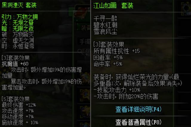 套装属性黑洞湮灭完爆江山如画,这也就是玩家说负提升的一个主要原因。
