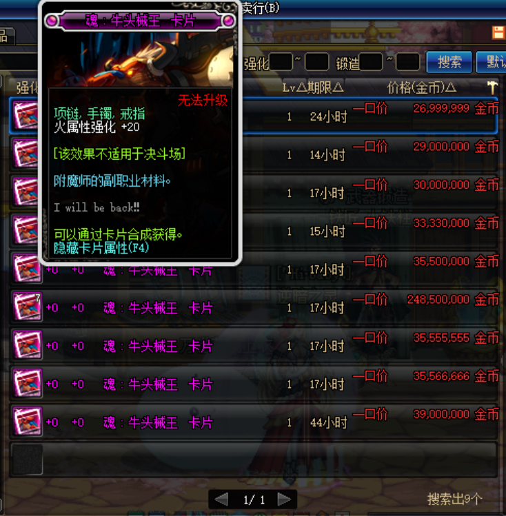 地下城与勇士已经上线将近十一年的时间,附魔卡片也是出了一批又一批,所以偶尔有几张属性一样的附魔卡片也是情有可原的。比如说超越之诺尔妮卡片和占星师罗塞洛卡片,魂虫王和暗恶魔,马蹄卡和光恶魔。这些附魔属性都是一模一样的,有些卡片属性相同价格也类似,但是有些卡片属性相同,但是价格却相差了一倍。