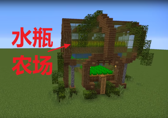 实际上我们仔细看会发现这是一个有3个大水瓶组成的农场,让我建造一个水瓶还好,能够把它们叠在一起可是真的不容易,而这个农场的设计特色就是把3个水瓶紧凑的叠在了一起。