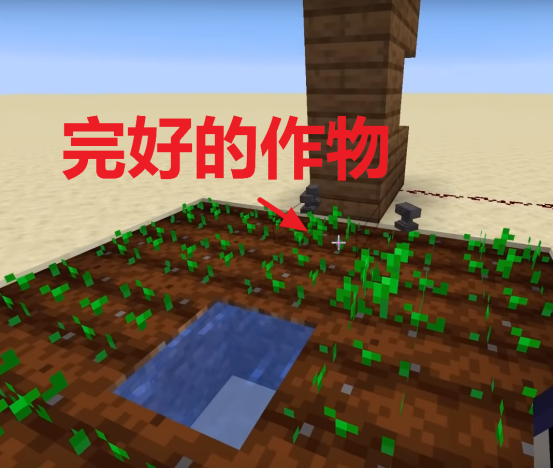 没错你没有看错,当我们激活活塞之后,3个铁砧从高空直接掉落到了田地里,可是平日里被我们轻轻一跃就会被踩死的作物在铁砧的面前确是纹丝不动,是不是看起来非常的恐怖呢?