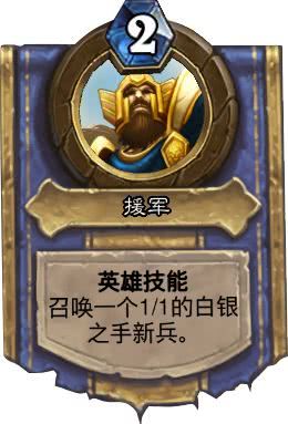 这个1-1的中年大叔可是圣骑士的英雄技能召唤出来的随从哦,虽然属性非常糟糕,但是聊胜于无,而且,圣骑士拥有非常多可以跟白银之手新兵产生联动的卡牌,敌人一旦掉以轻心,很容易招架不住这些小兵的进攻哦。除了英雄技能外,圣骑士可以通过迷失丛林,旱谷狱卒,作战动员,惩黑除恶,斩棘刀,强化过的英雄技能等卡方式召唤大量的白银之手新兵,对面的清场法术很容易跟不上圣骑士的召唤速度,最后圣骑士通过一些类似于军需官,等级提升,守日者塔林姆等BUFF卡牌,强化白银之手新兵,将场面优势无限扩大。