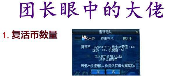 作为团长必须对整个团队负责,所以在放人的时候自然就会各种挑剔,只要有一点不合适,机会就已经被他在心中给PASS,即便放进团也只不过是凑人数的而已。不同的玩家有不同的理解,所以每一位团长都有自己的放人标准,但其实每位团长放人只会看这四个点而已,只要满足其中三个那么就能稳定进团。