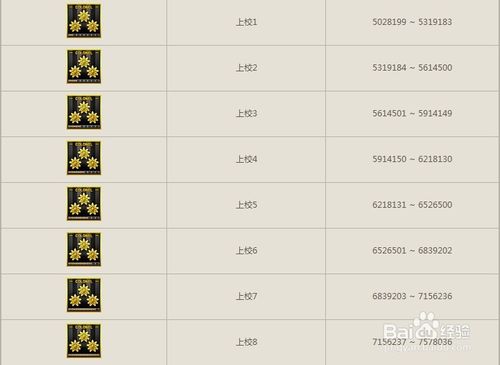 尉官军衔分别为少尉,中尉,上尉三个阶段,每个阶段都会有八等。所欲要的经验相对来说已经蛮高了。不太好升级。