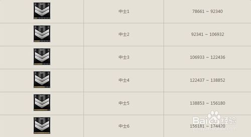 士官军衔分别经历下士,中士,上士三个阶段,每个阶段都会有六等。所需经验相对来说要求较低,比较好升级。