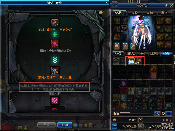 第一个格子内放入代号:希望传说装备后,第二个格子可放入史诗/勇者装备,消耗1800个碎片后,原装备会消失。