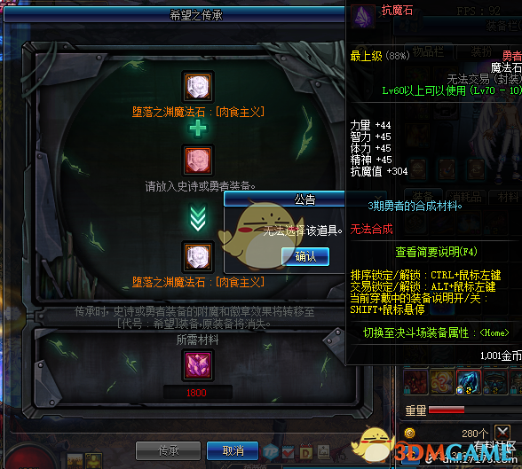抗魔石/太阳石臂章无法使用传承功能