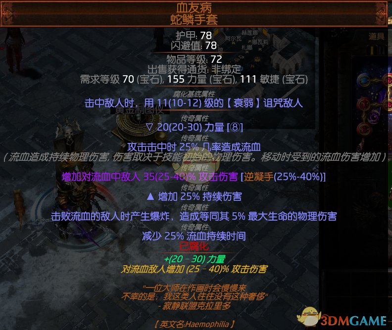 血友病是刷图用的手套,懒人如我不想换了。攻坚忽视攻击附加衰弱属性,有诅咒40C,无诅咒1C