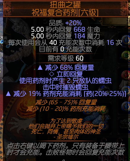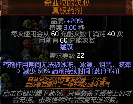 由于三瓶暗金虫药 异常状态难解 直接用这个解异常!一瓶抵四瓶!猛攻20移速也能提高机动性 完美并且免晕在怪堆里可以保证你不会被围殴 很关键!!