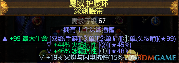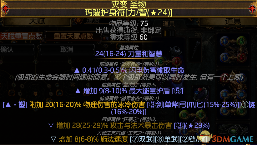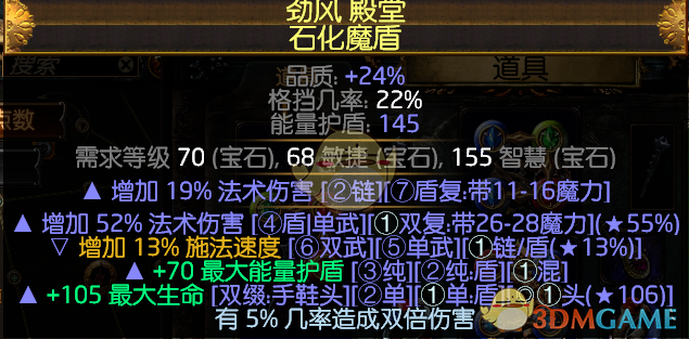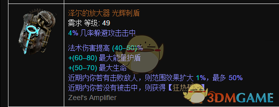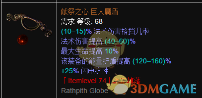 血盾流所以拿了 血量 ES 法伤 施法速度 的盾。可以补抗性,词缀根据装备自己调整。很想要赛季+2最小狂怒球的盾~