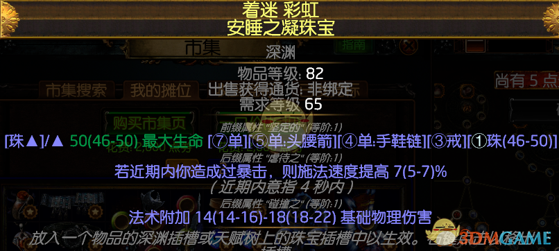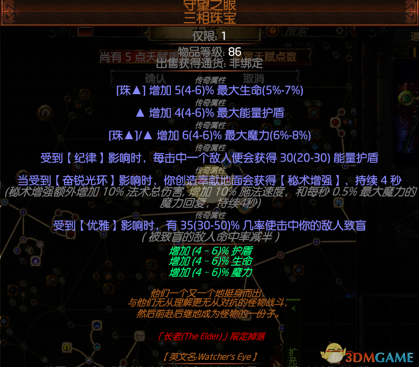 赛季初3E买的,用了EB所以没法触发秘术波动,只能靠珠宝。或者忆境戒指。纪律击回保证ES足够不断蓝。可以用ES吸取代替。