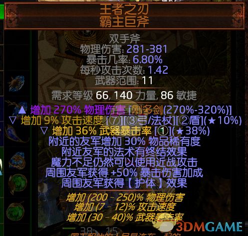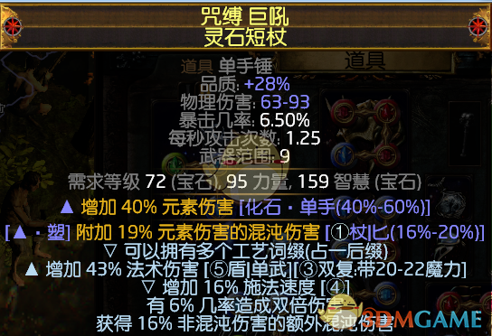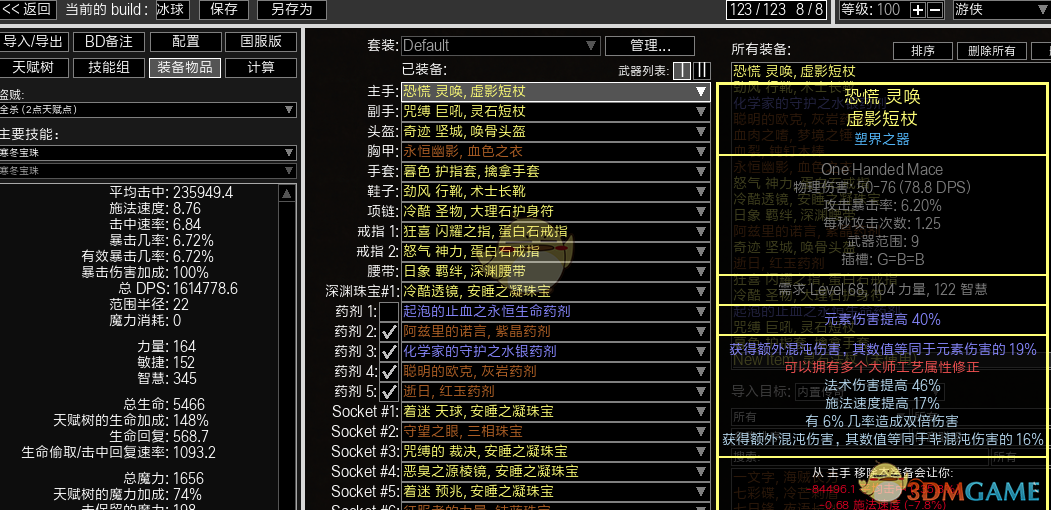 附上赛季武器和永久区武器POB数据对比,可以看出差距并不明显。原因:双武器混沌转化加上全身塑界装在衣服的做用下大量的混沌附加冰点伤的收益变的非常的高。