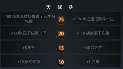 25级:+100热血竞技场提供团队生命恢复 或 +80%神之谴戒致命一击