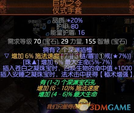 法系2洞深渊手,常驻秘术增强。提供血量,施法速度。