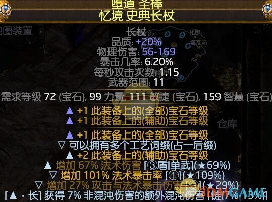 等级流武器,31级主技能,26级辅助,长杖适合任何法术。使用此武器可以换任何法术技能。