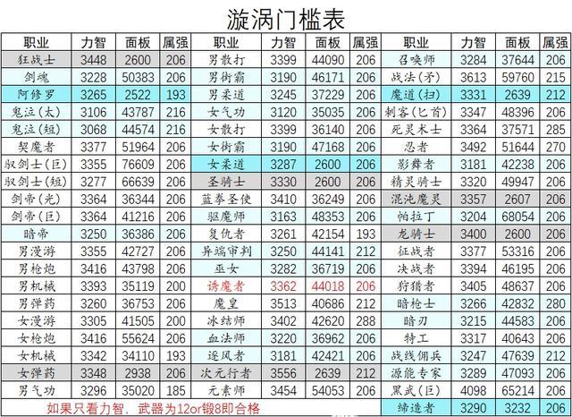 现在漩涡本已经没有当初那么难打,所以标准自然而然也降了下来,这样的属性要求相信每一位玩家的大号应该都能随便做到吧?而且部分职业3000力智就能打得很舒服了,95版本其实并没有大家想象得那么难。