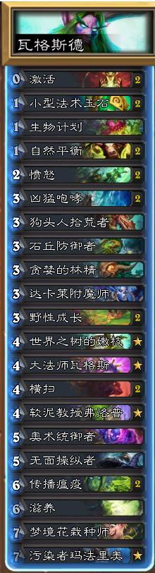 首先既然是瓦格斯法,那最核心的卡是瓦格斯。瓦格斯是可以让本回合我们释放的随机一个法术再随机对象释放一次。在此牌组中,他是用来配合自然平衡的。