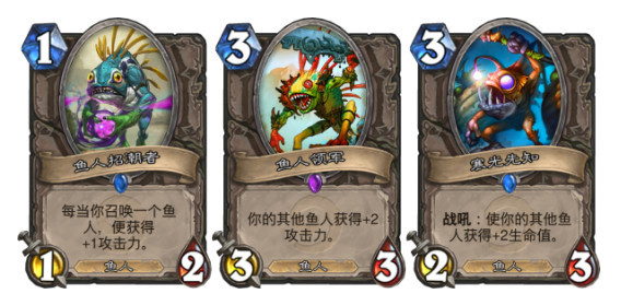 这三张卡可以说是所有鱼人体系必带的三张卡,而且是经久不退的铁三角。三者在前中期给予的压力十足,在领军削弱之后,寒光先知还能解决鱼人体系整体的低血线问题。