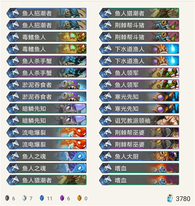 不实战永远没有发言权,但是马上进入新版本了,我还是想给大家一个卡组构筑的思路,作为一个相对便宜的卡组也是非常值得尝试的。鱼人体系有的人说强有的人说不强,具体怎么样还是得上线再看,不过我觉得炉石最吸引我的地方就是卡组构筑的过程,以及分享的过程。