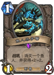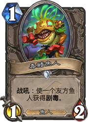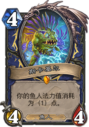 鱼人萨的橙卡,这卡我第一眼觉得很厉害,但是仔细想想发现这并不是一张4费卡,起码要5费才有收益,但是从节奏考虑,有的话直接4费就下了。你说这张卡强吗?强,但不是核心,只是锦上添花,而且基本都是解不掉的第二回合才有收益,但是这张卡最重要的意义是加强了鱼人的随机池,让下水道渔人的发挥更加的亮眼。但是由于我的构筑思路是极限快攻的鱼人萨,所以最终舍弃了这张卡。