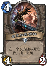 这两张卡放在一起说,都是用于过牌,鱼人大厨这张牌比较亏节奏,但是没办法,我们需要这张卡,但是我只带了一张。诅咒教派领袖俗称洗脚,我们最早的铺场体系的过牌手段,因为很符合思路,我们也需要过牌,所以我带了一张。
