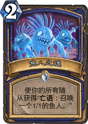 这卡很强,就是鱼人专属的丛林之魂,而且只要两费,非常灵活,鱼人的属性也比树人更值钱。当年超生德的4+4(精灵之森加丛林之魂)让多少控制卡组头疼,解不干净就是一个双咆哮斩杀,尤其是亵渎和心灵尖啸退环境之后,这个亡语赖场几乎是解不掉的,随时捏着领军和嗜血准备斩杀。
