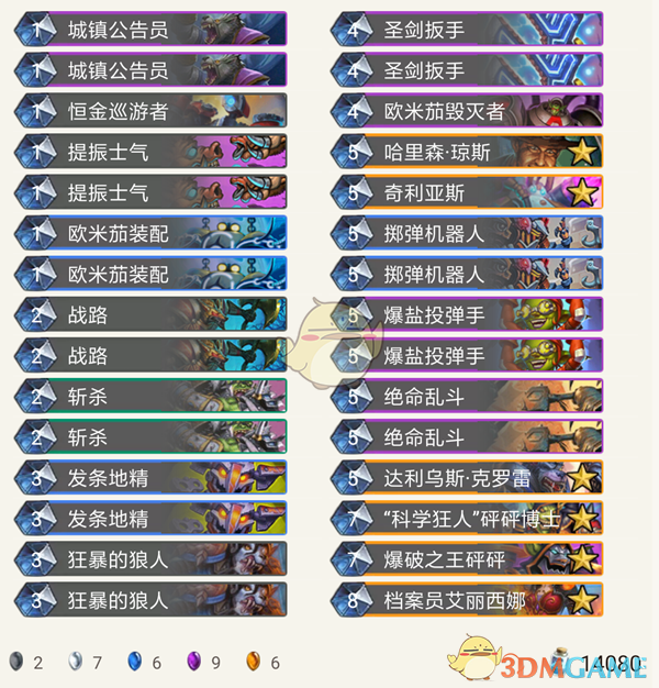 打奇迹贼的话,我们这套战士之所以厉害还是因为前期我们也有随从,跟班、公告员、巡游者的存在使得我们前期能够做到过牌和站场,这样就算是打节奏贼,我们在前期也是不落下风,炸弹的存在让我们有着可以叫杀对面的可能。