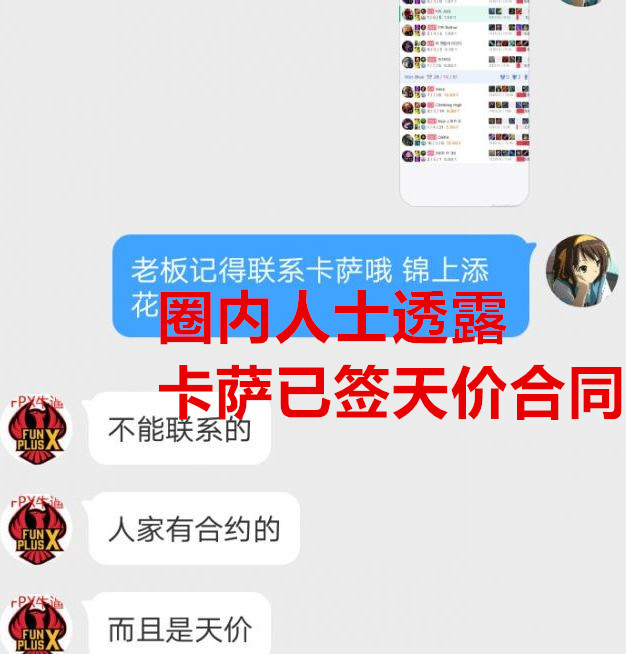 RNG副总裁原话:谢谢大家关心,也请“有心人”别过度解读了,我们会努力准备夏季赛。当然眼下的节奏不仅仅是关于Karsa,也有其他选手的节奏,比如之前一直没有回归的Letme和MLXG,以及AJ和姿态的去留,都是问题,但副总裁一席话确实没有Get到点上,不过有圈内人士爆料,根据FPX战队管理的微博聊天记录显示,似乎kasa以及签下天价合同!