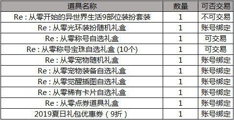 今年的五一礼包【Re : 从零开始的异世界生活臻选礼包】内一共包含以下内容: