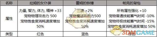 这次宠物装备分为拉姆的女仆装、蕾姆的铁锤、帕克的背包三种,宠物装备可是非常强势的,尤其是“拉姆的女仆装”,能加四维33点,对于辅助奶来说,又是一波提升!而“蕾姆的铁锤”和“帕克的背包”,这两个宠物装备,在属性上来说,并不是很强势。唯有红色部位“拉姆的女仆装”,有着很大的吸引力。
