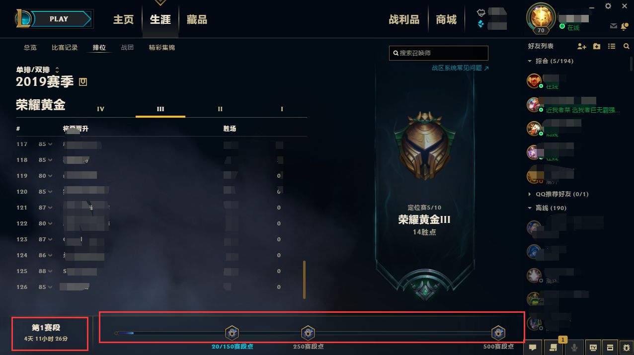 召唤师可以前往生涯->排位页签了解自己当前的赛段点数情况,如下图: