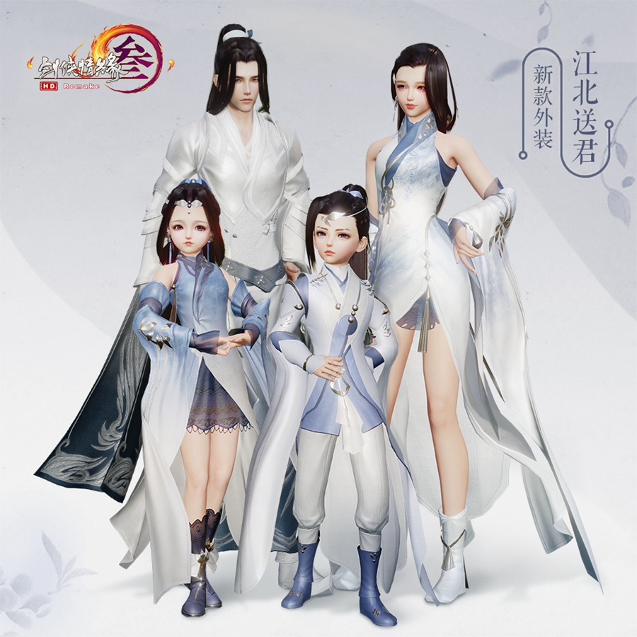 除了丝路主题的礼盒与靓丽金发外,全新成衣“江北送君”也将上架商城。新款成衣以独特的江南剪裁手法加以缝制,款型朴素,配套装饰精致简洁。男款成衣干净利落、笔挺修身,女款端庄典雅、落落大方,共6种偏色可供侠士进行挑选。