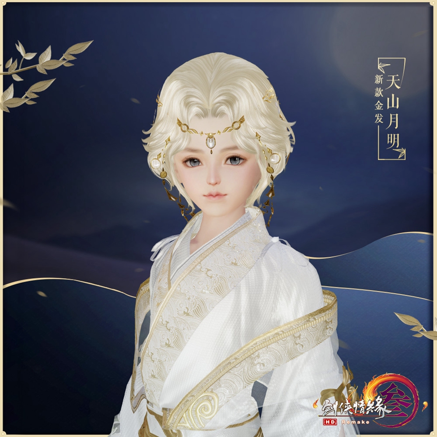 全新金发“天山月明”今日正式曝光!新金发沿用了侠士们喜欢的奶白金发色,在款式设计中种融入了诸多西域元素,并搭配精致饰品加以妆扮点缀,展现西域特殊美感的同时,也实现了发型潮流的新突破!