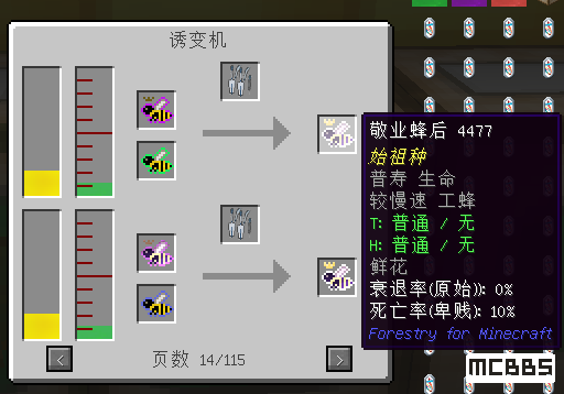 当某组合蜜蜂有两种或两种以上突变品种时,普通诱变机出现的新蜂王品种时随机的,高级突变机增加了选择品种的功能。