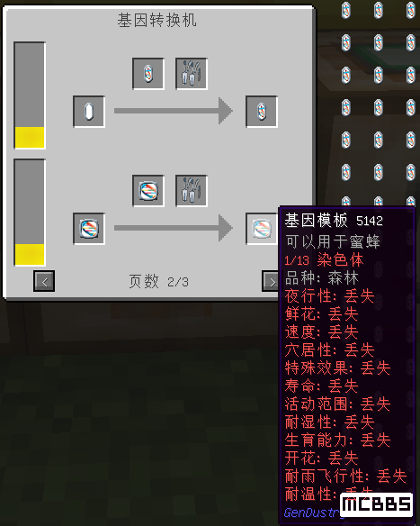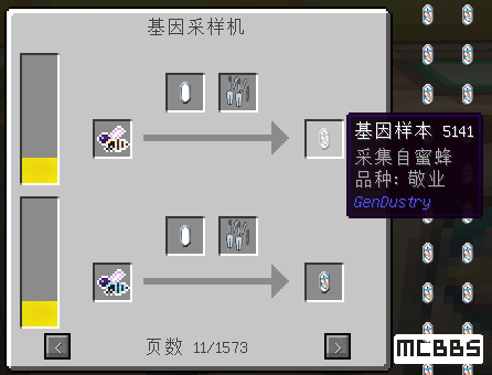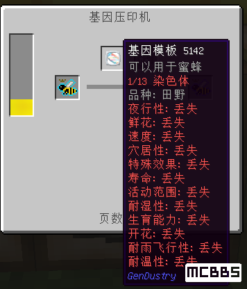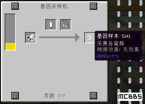 将蜜蜂、树木及蝴蝶的某一条基因单独提取出来,被采集基因的生物100%损失掉,采集到的基因时原料生物的哪一条,完全随机。所以当拥有某条基因的生物数量很少的时候就不要想采集基因。比如要采集伊甸蜜蜂的特殊效果:探索,而你手里只有一只伊甸公主蜂和不足十只的伊甸雄峰,那就不要妄想能采集出探索。乖乖的用工业蜂箱多繁殖出一些伊甸雄峰才是正路。