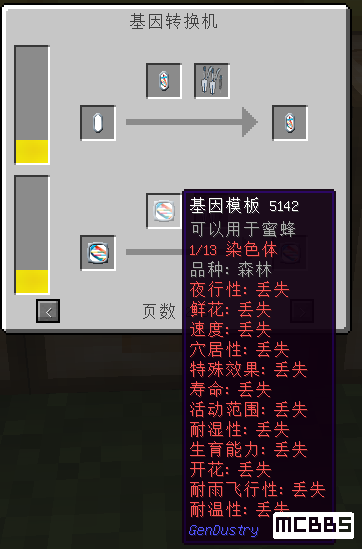 基因模板,共有13项可定制基因条目,包括品种、寿命、生育能力等等。可与基因样吧合成后,用于改变蜜蜂、树木及蝴蝶基因或凭空制造蜜蜂、树木及蝴蝶。