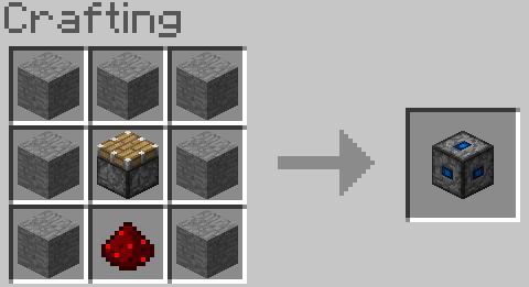 当前方检测到方块放置时就会自动发出红石信号。你也可以通过放入物品过滤仪来使方块检测机检测到某种特定方块时才发出红石信号