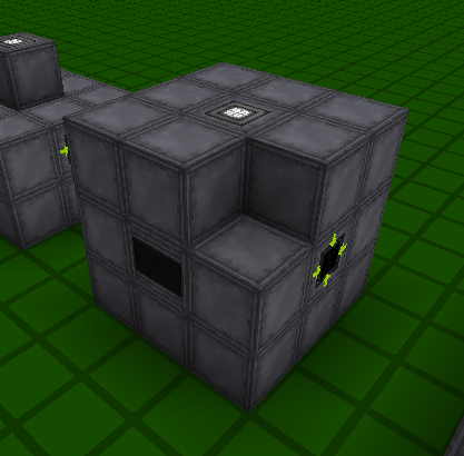 将访问接口,能量接口和控制器放在四个缺口,在燃料棒的顶端放置控制棒。最后将其与空位用反应堆外壳填充。