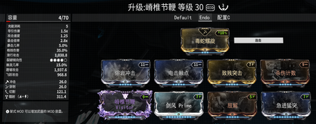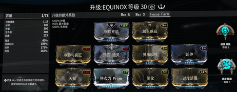 非强制要求:Naramon专精学派经验激增、力量激增被动技能,速攻赋能、狂怒赋能、结果赋能等。