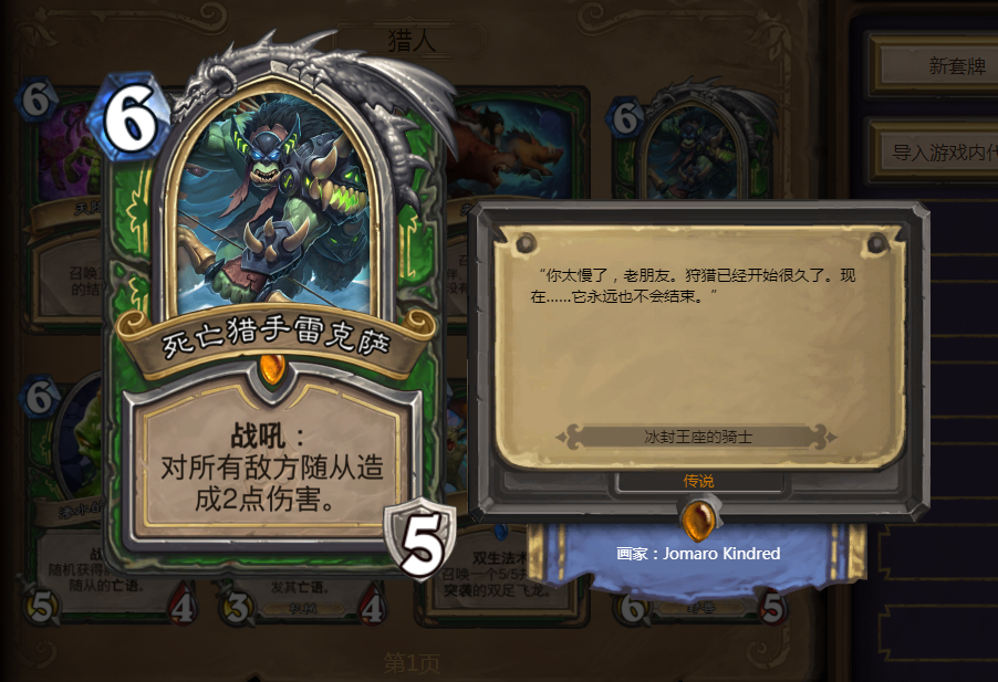 为了后期的保障我们还是选择了带上DK,还有一个原因是因为我们实在不需要其他随从卡牌,这样一看DK倒是一个不错的选择。虽说狂野模式下的DK技能不确定性太大,但有时候还是能捏出神鲲,所以这些种种的原因使得我们有必要带上DK。