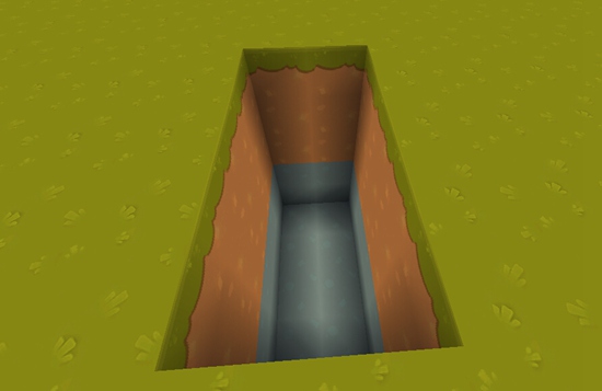 1.首先挖一个坑出来,坑的宽度就是门的宽度(这里2格宽),高度就是门的高度的2倍+1格(这里要做一个2格高的门,所以深度是2*2+1=5),长度的话尽量先拉长一些,因为方便你做东西,不用的之后填掉就好;