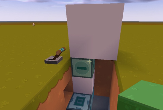 注意:这里的门的材料必须是滑动方块能带得动的非自然生成的方块哦,比如木板、岩石块、硬砂块都可以。泥土和岩石是不可以的哦~