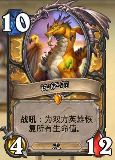 这套牌的奶带了超级多,不过最奶的还是新出的橙卡龙,诺萨利,可以一瞬间奶慢双方玩家的生命,真的很不错,可以用来救自己,很不错。