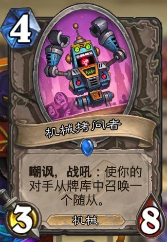 机械拷问者是打战士的神器,因为最近很多战士,又很厉害,所以带一两张机械拷问者可以拉出一些地雷,然后弄掉。