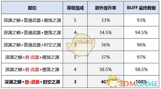 下表是不同搭配的等级、额外提升率: